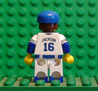 | THIS IS BO JACKSON IN HIS HOME JERSEY. THIS MINIFIGURE HAS 10 DECALS, FRONT AND BACK TORSO, FRONT AND BACK BELT, BOTH LEGS, BOTH ARMS, FACE, AND HAT. HE ALSO HAS BLUE PAINTED HIPS, ARMS, AND SHOES. |