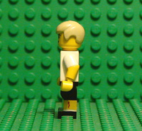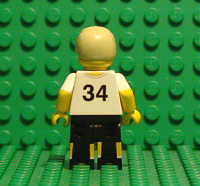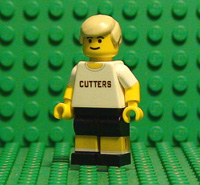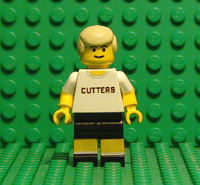 | THIS IS DAVE STOLLER, LEAD CHARACTER IN BREAKING AWAY. THIS MINIFIGURE HAS DECALS ON FRONT AND BACK TORSO AND BOTH LEGS. PLEASE NOTE THE CUT ON HIS LEFT LEG WHERE HE WAS KNOCKED TO THE GROUND IN THE BIG RACE. IT ALSO HAS YELLOW PAINTED ARMS. |