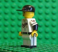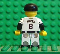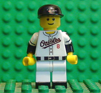 | THIS IS CAL RIPKEN JR. IN HIS HOME JERSEY. THIS MINIFIGURE HAS 9 DECALS, FRONT AND BACK TORSO, FRONT AND BACK BELT, BOTH LEGS, BOTH ARMS, AND HAT. HE ALSO HAS BLACK PAINTED HIPS, ARMS, AND SHOES. |
