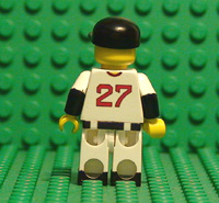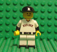 | THIS IS CARTON FISK IN HIS HOME 1975 JERSEY. THIS MINIFIGURE HAS 5 DECALS, FRONT AND BACK TORSO, FRONT AND BACK BELT, AND HAT,. HE ALSO HAS BLACK PAINTED HIPS, ARMS, AND SHOES. |
