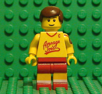 | THIS IS PETE LAFLEUR, OWNER OF AVERAGE JOE'S AND LEAD CHARACTER IN DODGEBALL. THIS MINIFIGURE HAS DECALS ON FRONT AND BACK TORSO, BOTH ARMS (INCLUDING THE AVERAGE JOE'S PATCH), AND BOTH LEGS. |