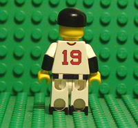 | THIS IS FRED LYNN IN HIS HOME 1975 JERSEY. THIS MINIFIGURE HAS 5 DECALS, FRONT AND BACK TORSO, FRONT AND BACK BELT, AND HAT,. HE ALSO HAS BLACK PAINTED HIPS, ARMS, AND SHOES. |