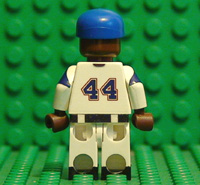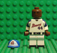 | THIS IS HANK AARON IN HIS HOME JERSEY. THIS MINIFIGURE HAS 8 DECALS, FRONT AND BACK TORSO, FRONT AND BACK BELT, BOTH ARMS, HAT, AND FACE. HE ALSO HAS BLACK PAINTED SHOES. |