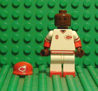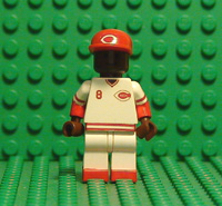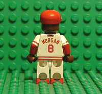 | THIS IS JOE MORGAN IN HIS HOME JERSEY. THIS MINIFIGURE HAS 8 DECALS, FRONT AND BACK TORSO, FRONT AND BACK BELT, BOTH ARMS, FACE, AND HAT. HE ALSO HAS RED PAINTED HIPS AND ARMS AS WELL AS BLACK PAINTED SHOES. |