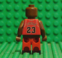 | THIS IS MICHAEL JORDAN IN HIS RED BULLS UNIFORM. THIS MINIFIGURE HAS DECALS ON FRONT TORSO AND BACK TORSO AS WELL AS THE FACE. IT ALSO HAS BLACK PAINTED HIPS AND SHOES. |