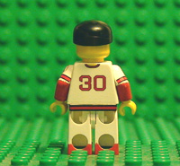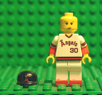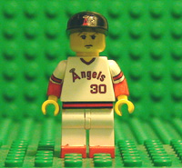 | THIS IS NOLAN RYAN IN HIS HOME ANGELS JERSEY. THIS MINIFIGURE HAS 9 DECALS, FRONT AND BACK TORSO, FRONT AND BACK BELT, BOTH ARMS, BOTH LEGS, AND HAT. HE ALSO HAS RED PAINTED HIPS, ARMS, AND SHOES. |