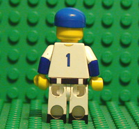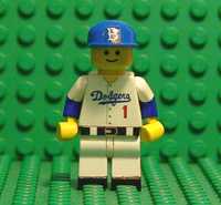| THIS IS PEEWEE REESE IN HIS HOME JERSEY. THIS MINIFIGURE HAS DECALS, FRONT AND BACK TORSO, FRONT AND BACK BELT, AND HAT. HE ALSO HAS BLUE PAINTED ARMS, BLACK PAINTED SHOES AND HIPS. |