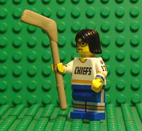 | THESE ARE THE HANSON BROTHERS FROM SLAP SHOT. THEY EACH HAVE DECALS ON FRONT AND BACK TORSO, BOTH ARMS (INCLUDING FEDERATION LEAGUE PATCH), AND BOTH LEGS. THEY ALSO HAVE CUSTOM HOCKEY STICKS. |
